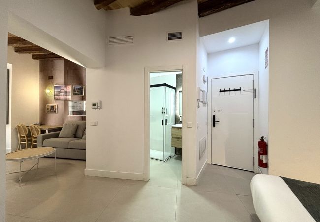 This spacious studio apartment (second floor with elevator) is located in a historic building over 300 years old, recently reconstructed. It is situated just 250 meters from the Mercado de San Miguel, 300 meters from Plaza Mayor, and 750 meters from the Royal Palace and Puerta del Sol.