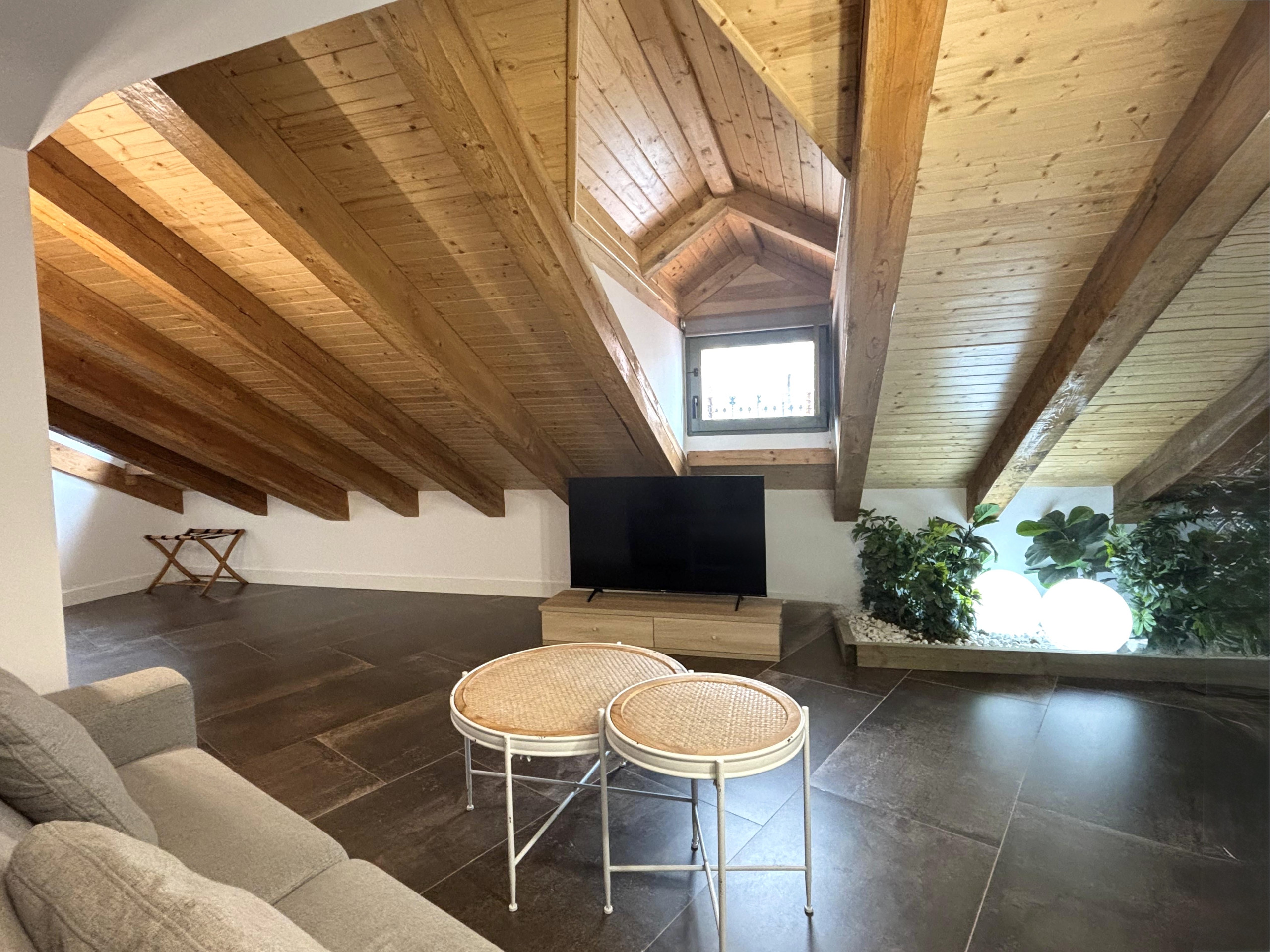 This spacious studio attic is located in a historic building over 300 years old, newly reconstructed. It is situated just 250 meters from the Mercado de San Miguel, 300 meters from the Plaza Mayor, and 750 meters from the Royal Palace and Puerta del Sol.
