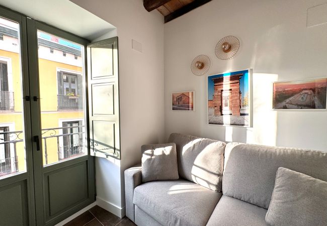Questo ampio appartamento tipo monolocale (terzo piano con ascensore) si trova in un edificio storico di oltre 300 anni, recentemente ricostruito. È situato a soli 250 metri dal Mercado de San Miguel, a 300 metri da Plaza Mayor e a 750 metri dal Palazzo Reale e dalla Puerta del Sol.
