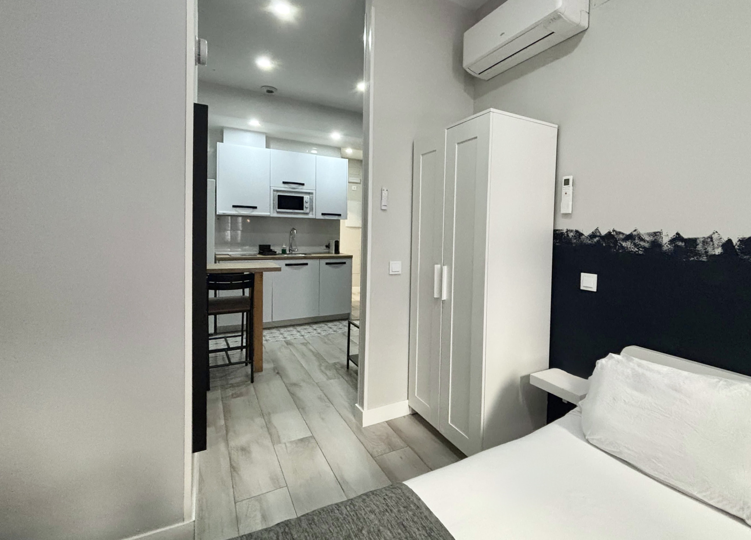 Questo ampio appartamento monolocale si trova in un edificio storico di oltre 200 anni, appena ristrutturato. È situato a soli 100 m dalla Piazza Maggiore, a 250 m dal Mercato di San Miguel e a 700 m dal Palazzo Reale e dalla Porta del Sole.